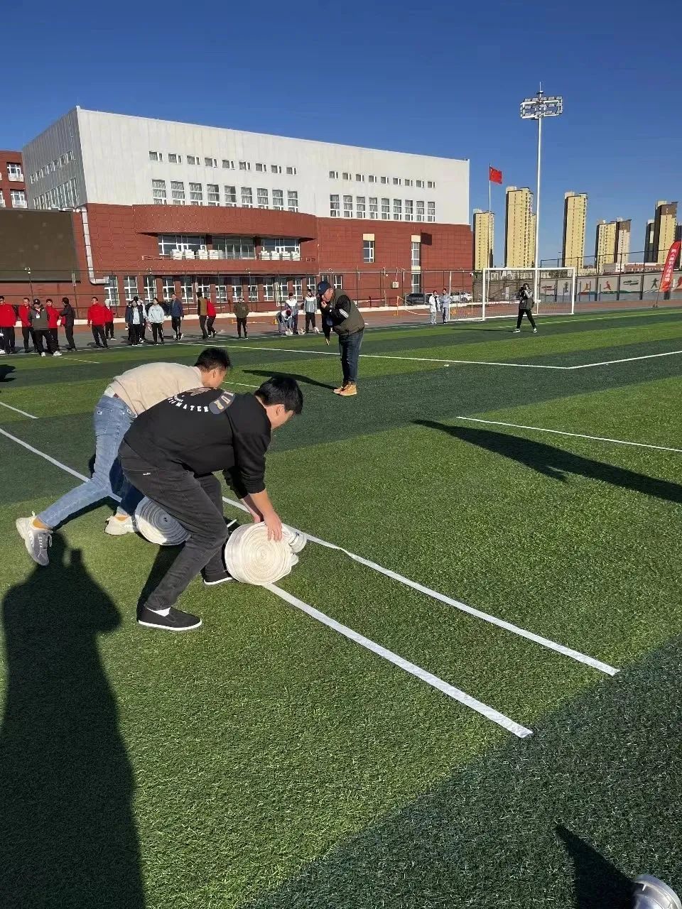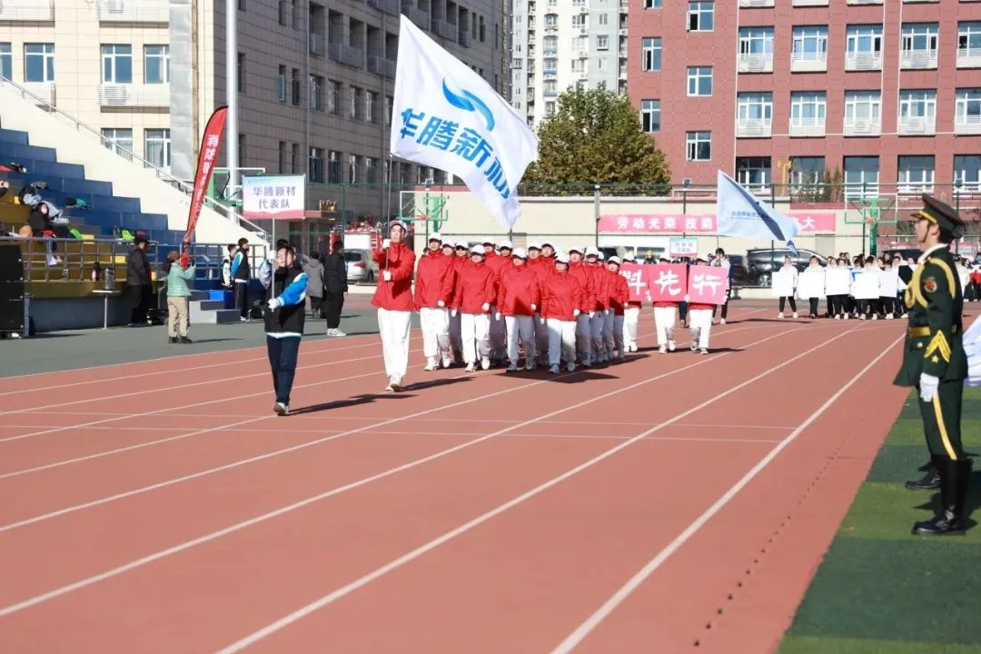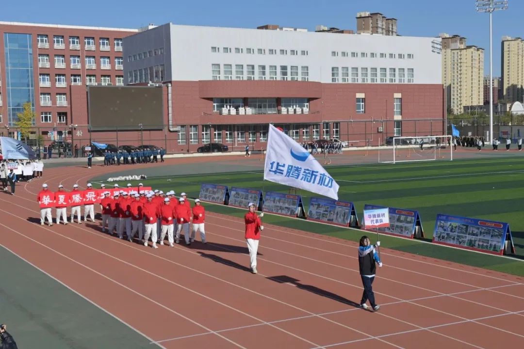 比賽當(dāng)日,賽場(chǎng)彩旗飄揚(yáng)、場(chǎng)面熱烈,在開幕式隊(duì)列中,伴著激昂的鼓聲和雄壯的樂曲聲,華騰新材入場(chǎng)方陣動(dòng)作整齊劃一,口號(hào)聲響徹云霄。隊(duì)員們精神抖擻、器宇軒昂,邁著雄健的步伐以昂揚(yáng)的姿態(tài),挺胸抬頭、闊步向前,展現(xiàn)出華騰人朝氣蓬勃、奮勇爭(zhēng)先的精神風(fēng)貌。