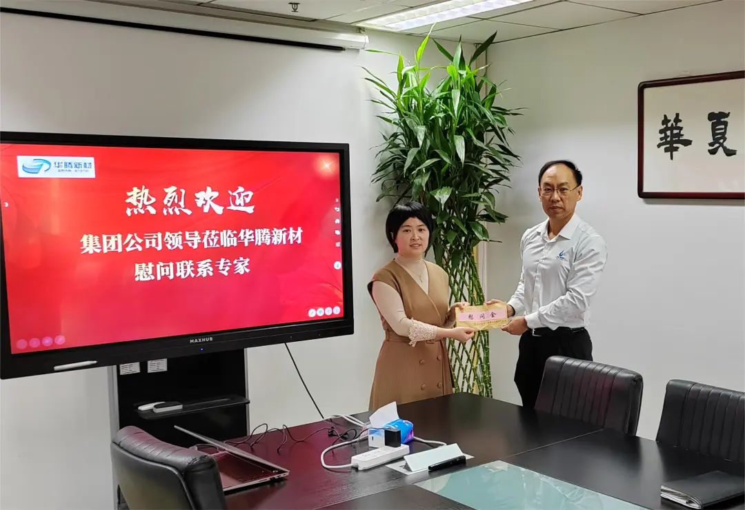 12月26日上午,集團(tuán)公司副總經(jīng)理張榮寰蒞臨華騰新材北京總部,對(duì)聯(lián)系服務(wù)專家崔正進(jìn)行慰問,華騰新材黨總支書記齊小麗參加座談。