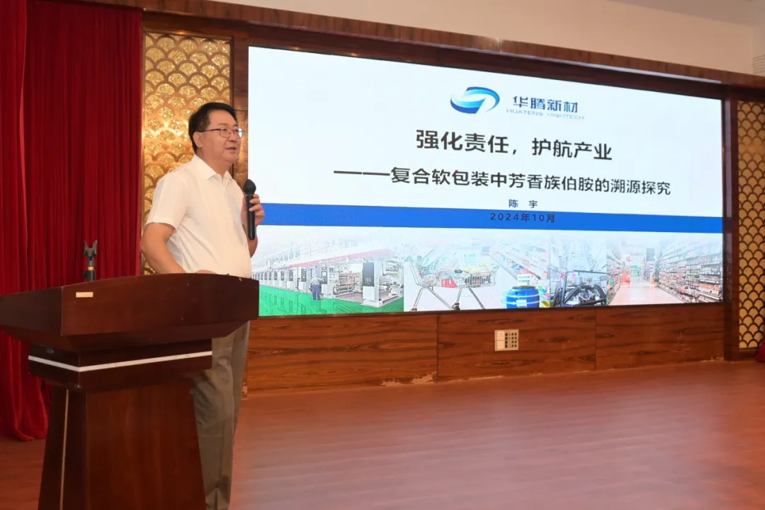 陳宇董事長以《強(qiáng)化責(zé)任 護(hù)航產(chǎn)業(yè)——復(fù)合軟包裝中初級芳香胺溯源探究》為主題,對目前復(fù)合軟包裝中初級芳香胺存在問題進(jìn)行了分析,結(jié)合目前的研究成果,展望未來初級芳香胺在復(fù)合軟包裝的應(yīng)用,引起與會(huì)專家和來賓的熱烈反響。