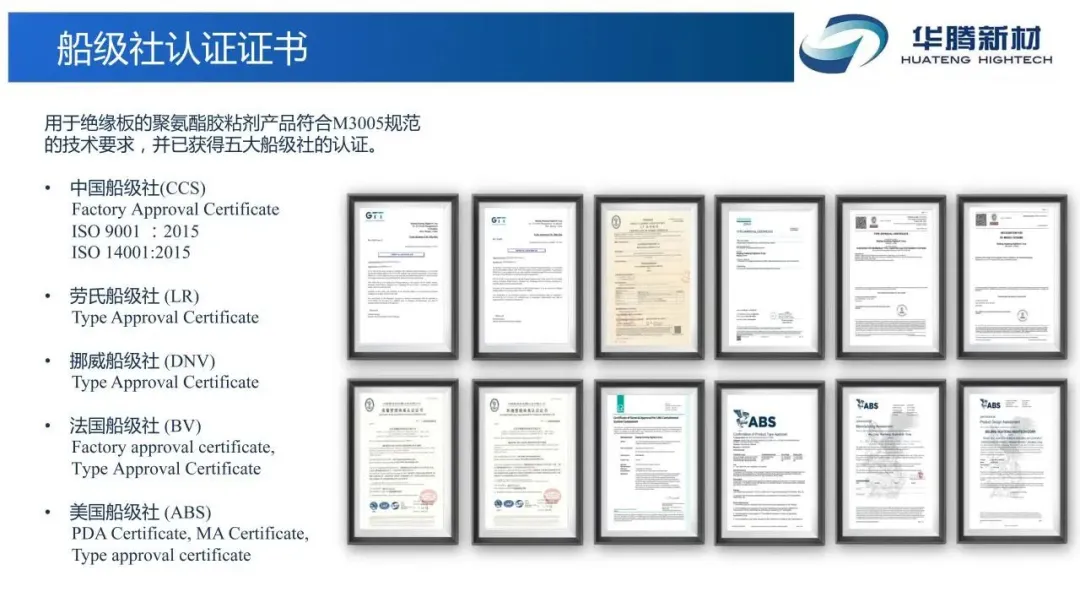 “十四五”期間,華騰新材在深耕傳統(tǒng)膠粘劑市場(chǎng)基礎(chǔ)上,直面LNG船用膠這一“卡脖子”技術(shù)難題,以高端新材料“破題”為抓手,以產(chǎn)業(yè)迭代為目標(biāo),將LNG船用膠作為解決自主替代難題,大膽突破,開(kāi)拓新市場(chǎng)的重點(diǎn)科研項(xiàng)目。2023年,經(jīng)過(guò)科研人員多年全力攻關(guān),華騰新材LNG船用膠產(chǎn)品取得重要突破,其中絕緣板用聚氨酯膠粘劑成功通過(guò)法國(guó)GTT公司認(rèn)證,并順利投入商業(yè)化生產(chǎn)。