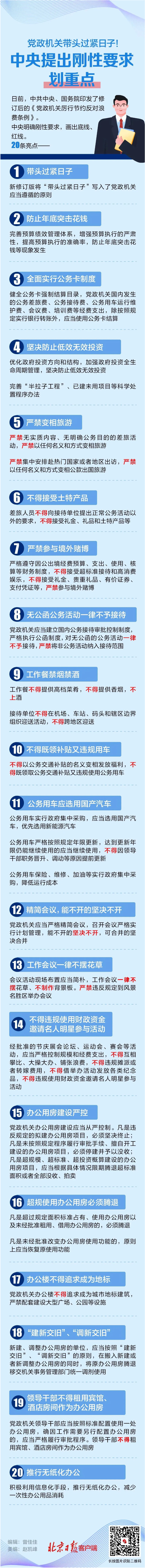 日前,中共中央、國務院印發(fā)了修訂后的 《黨政機關厲行節(jié)約反對浪費條例》 中央明確剛性要求,畫出底線、紅線。 20條亮點 一起來看