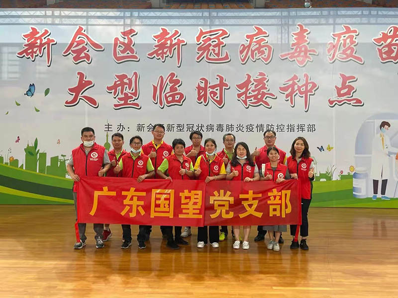 在組織開展黨史學(xué)習(xí)教育的同時,廣東國望公司黨支部深入開展“我為群眾辦實事”活動。結(jié)合廣東地區(qū)防疫形勢,黨支部積極與屬地疾控中心進行聯(lián)系,了解到新冠疫苗接種點義工不足,亟待支援的情況后,6月12日,國望公司支委班子組織黨員12人,集體前往屬地疫苗大型臨時接種點,協(xié)助開展場內(nèi)場外人員疏導(dǎo)工作,得到屬地義工聯(lián)、疾控中心的高度肯定。黨旗在防疫一線高高飄揚。